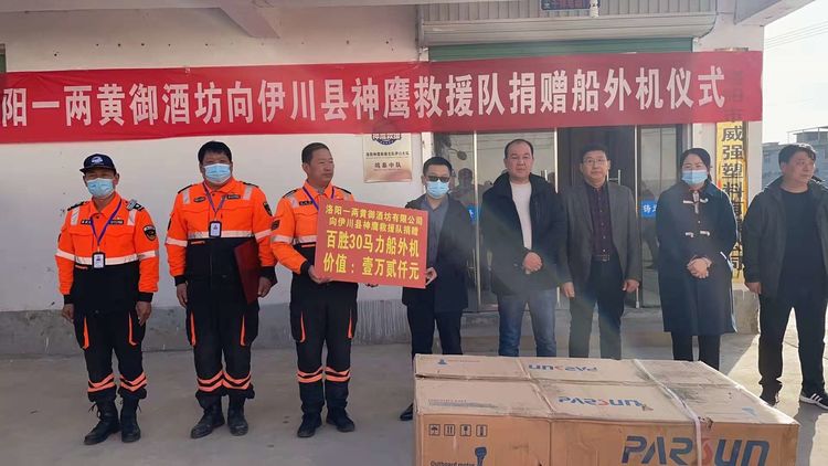 事件:2021年11月12日上午,在伊川縣神鷹救援隊(duì)鳴皋中隊(duì),隆重舉行捐贈(zèng)船外機(jī)儀式,愛(ài)心企業(yè)洛陽(yáng)一兩黃御酒坊向伊川神鷹救援隊(duì)捐贈(zèng)價(jià)值壹萬(wàn)貳仟元百勝30馬力船外機(jī)一臺(tái),出席本次捐贈(zèng)儀式的有愛(ài)心企業(yè)家姜會(huì)明先生、中溪村黨委書(shū)記姜毅濤書(shū)記和村委委員們,伊川神鷹救援隊(duì)隊(duì)長(zhǎng)梁緒偉、副隊(duì)長(zhǎng)張志強(qiáng)、指導(dǎo)員李志輝、以及伊川神鷹救援隊(duì)鳴皋中隊(duì)的隊(duì)員們,儀式上梁緒偉隊(duì)長(zhǎng)對(duì)愛(ài)心企業(yè)的無(wú)私捐贈(zèng)表示感謝,并給愛(ài)心企業(yè)家贈(zèng)送愛(ài)心企業(yè)牌匾。在儀式進(jìn)行過(guò)程中,11月8日幫助尋找到的兒童家屬送來(lái)錦旗表示感謝!感謝伊川縣神鷹救援隊(duì)在他們危難時(shí)刻及時(shí)幫助尋找到孩子。